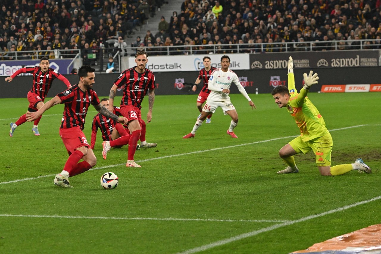 Raków próbował odpowiedzieć – uderzenie Carlosa po akcji z Ivim obronił Cojocaru.