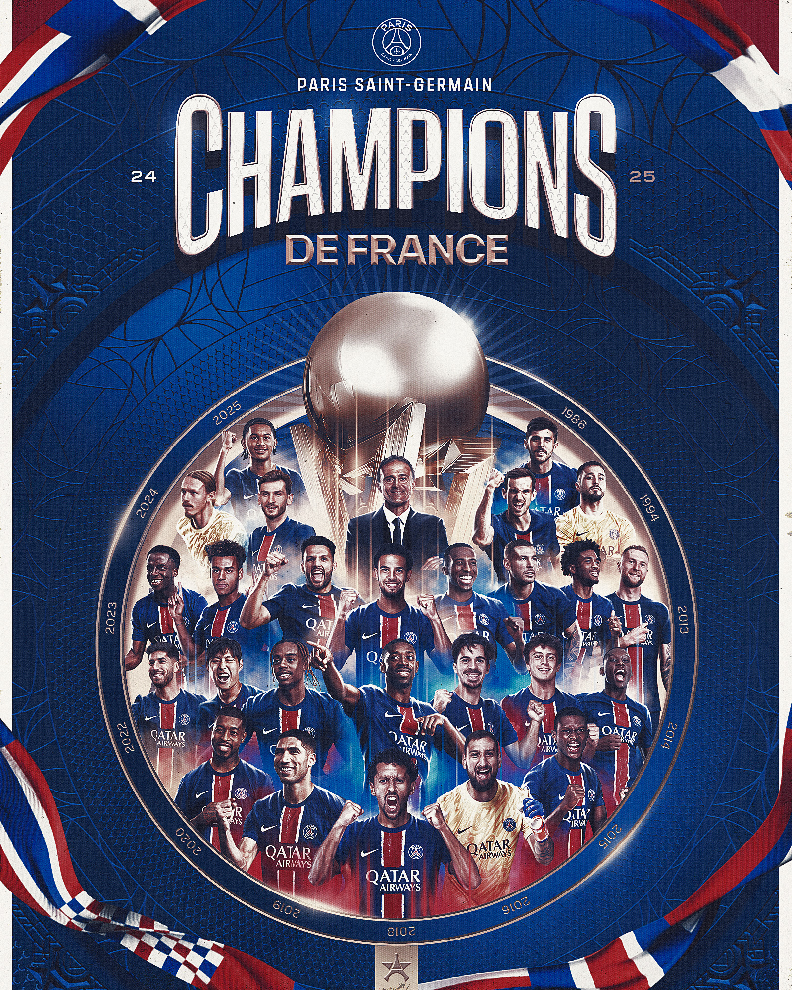 Stało się to, co było do przewidzenia - Paris Saint Germain po raz 13 w swojej historii zostało Mistrzem Francji. Było to 4 z rzędu zdobyte mistrzostwo - 11 z nich  zdobyło od 2013 roku. W trakcie tego okresu, tylko 2 razy udało się innemu zespołowi wygrać ligę - 2017 roku AS Monaco oraz 2021 - Lille OSC. PSG zapewniło sobie tytuł we wczorajszym meczu z Angers, których pokonali 1:0. Dzięki temu zwycięstwu mają 74 punkty co daje im przewagę... 24 punktów nad drugim AS Monaco. Jak łatwo policzyć, taka strata nie jest już do odrobienia.